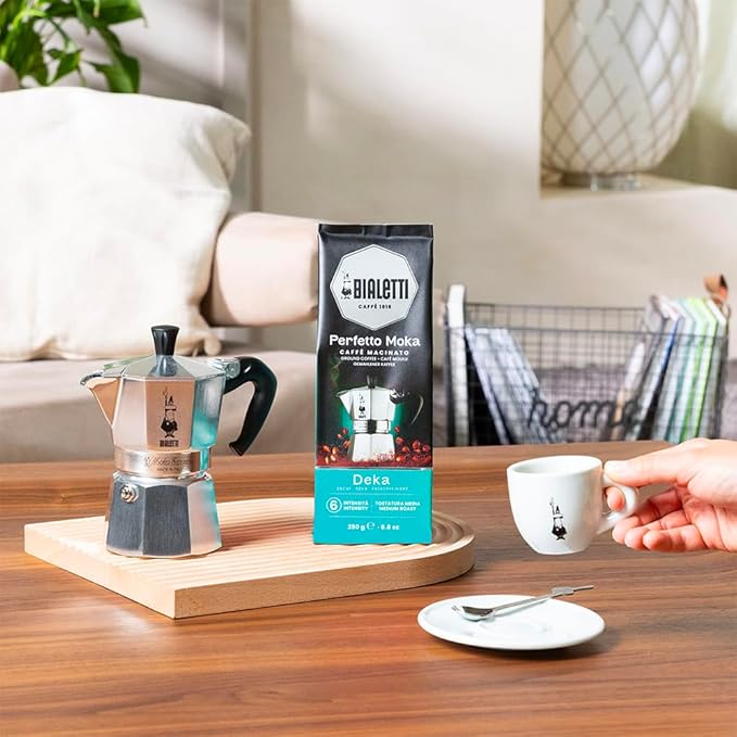 Bialetti že več kot 80 let razvija popolno kavo za pripravo v domači Moka kafetieri. Kava je pražena na tradicionalen in obrtniški način z dolgotrajnim in nadzorovanim praženjem, ki poudari celoten spekter arom izbranih kavnih izvorov.